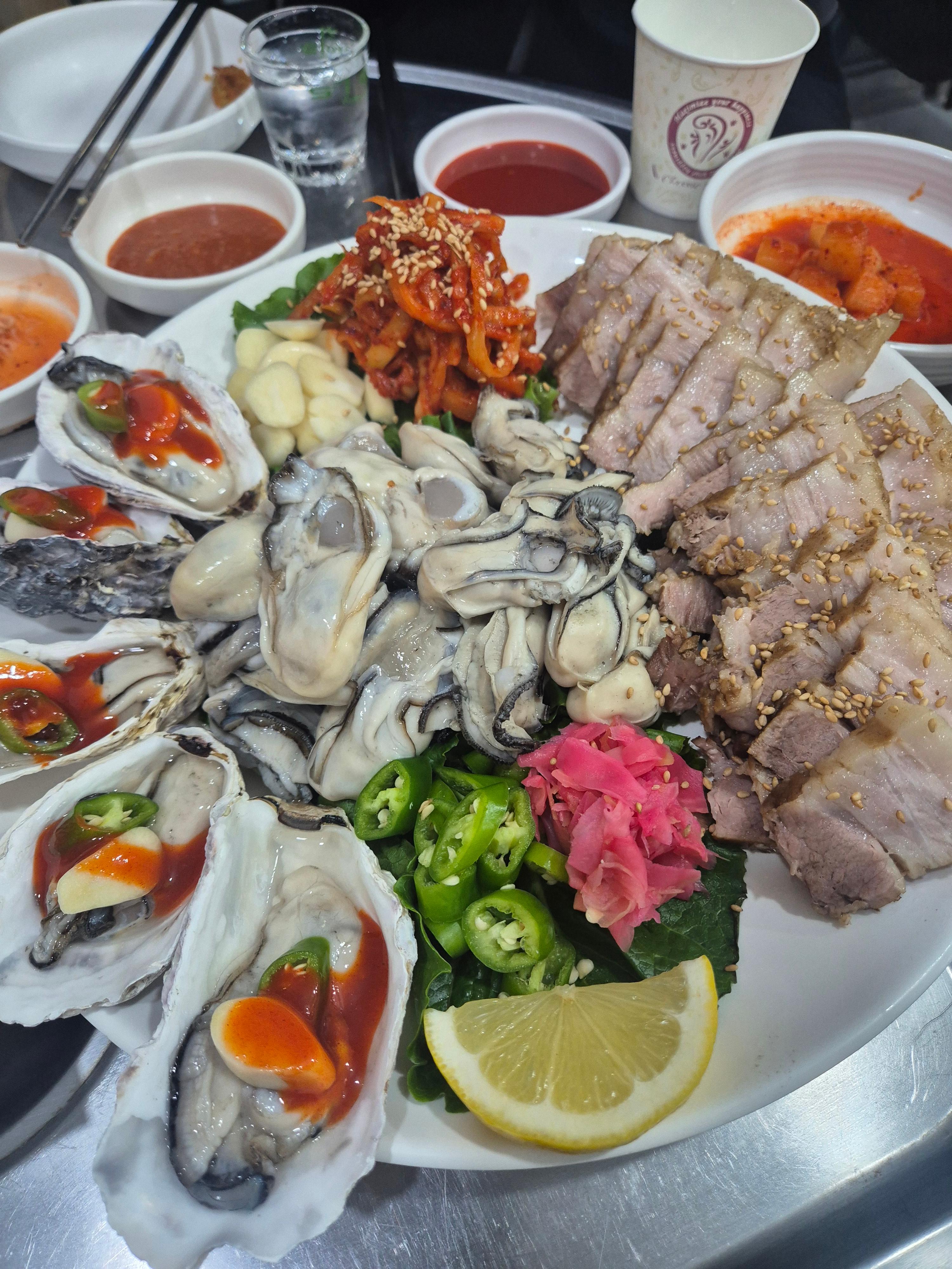 - 굴보쌈: 생굴/숙회 반반 주문함. 수육이 부드럽고 굴과 잘 어울림. 굴 좋아하면 생굴, 낯설면 숙회 추천.